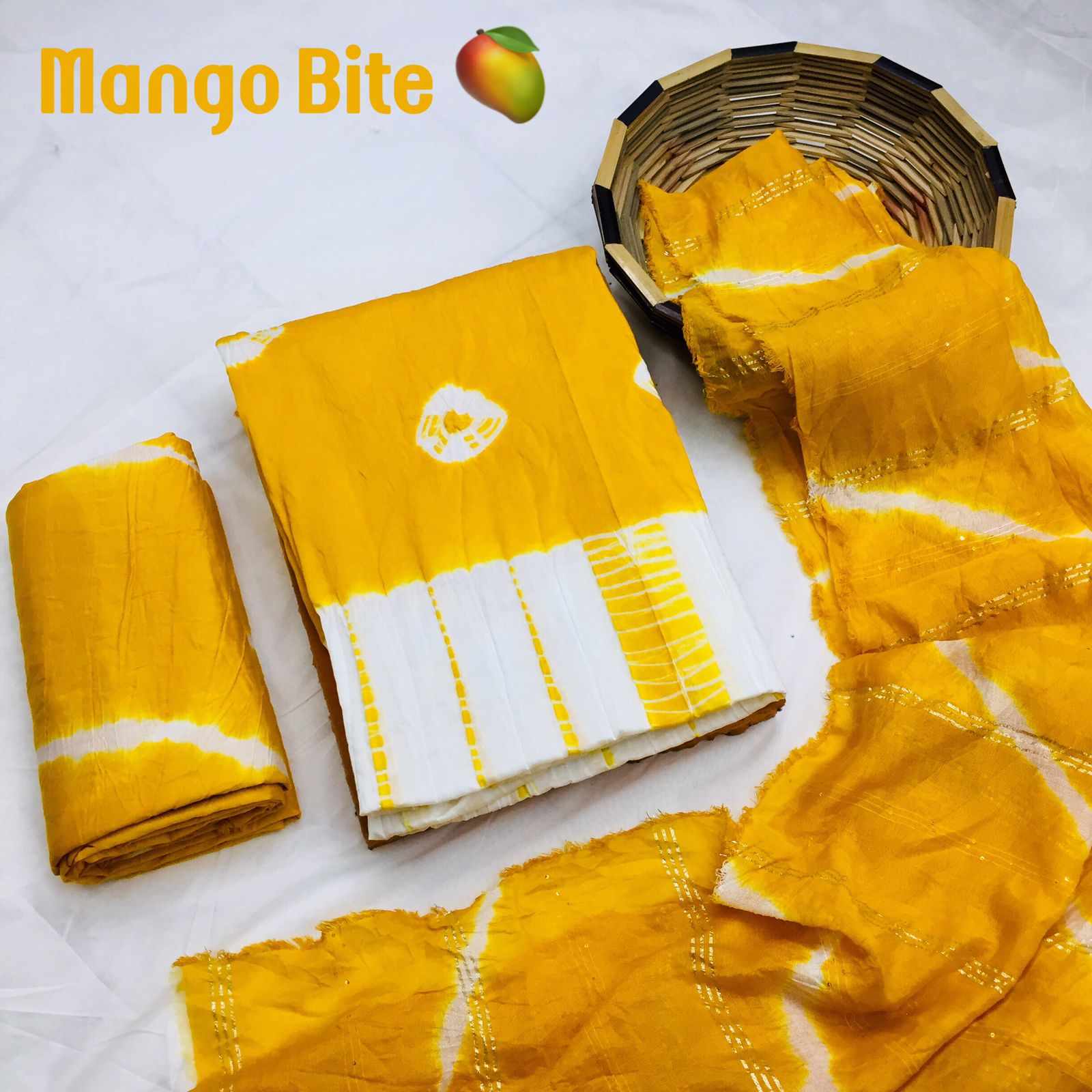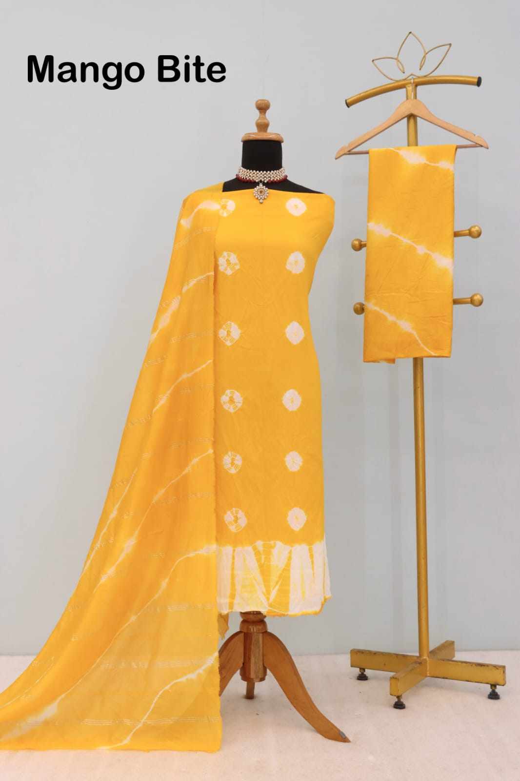 KT FIZA Yellow Pure Rayon Bandhni Dress Materail
