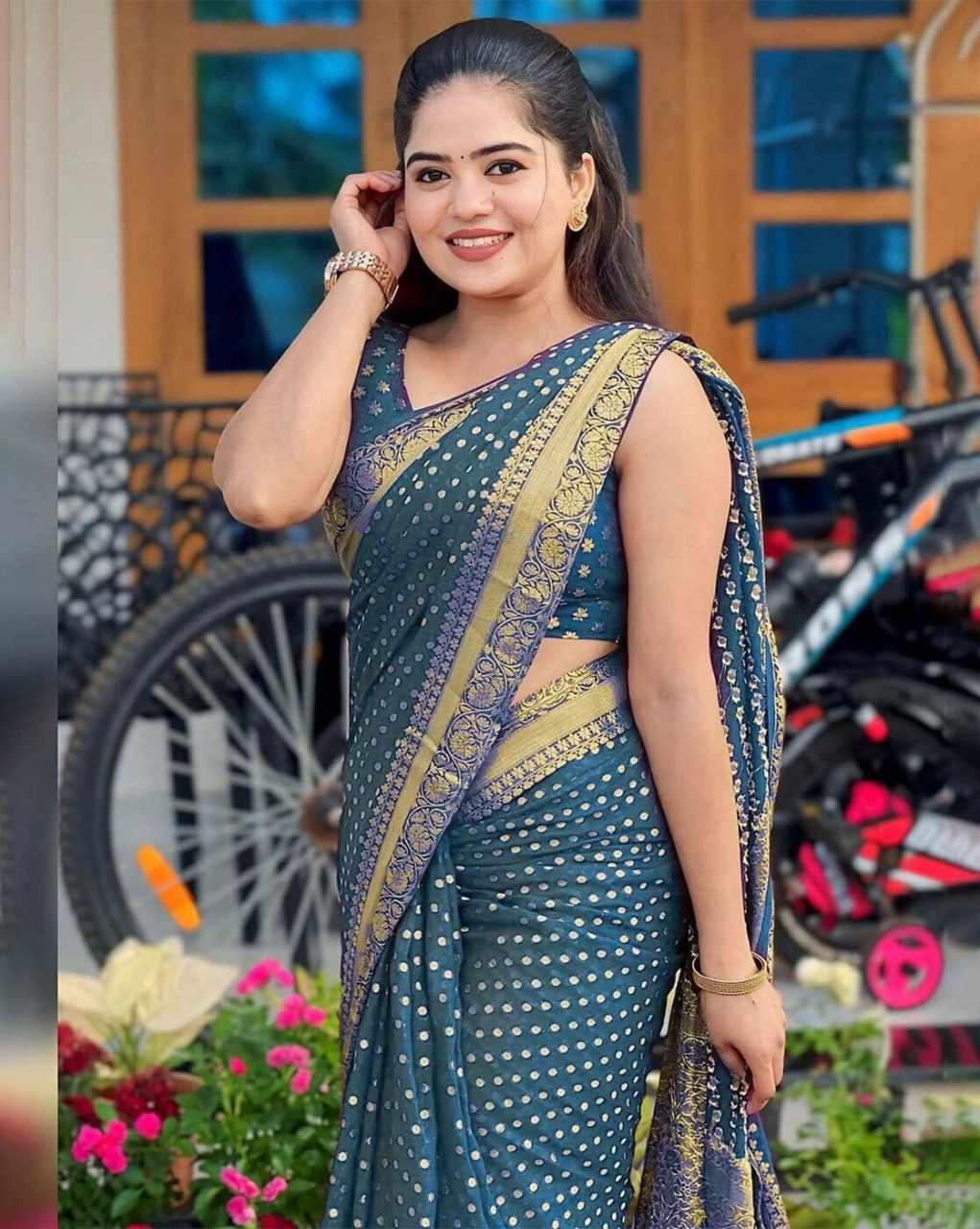 Name : MF 1830 PETROL SOFT LICHI SILK SAREE