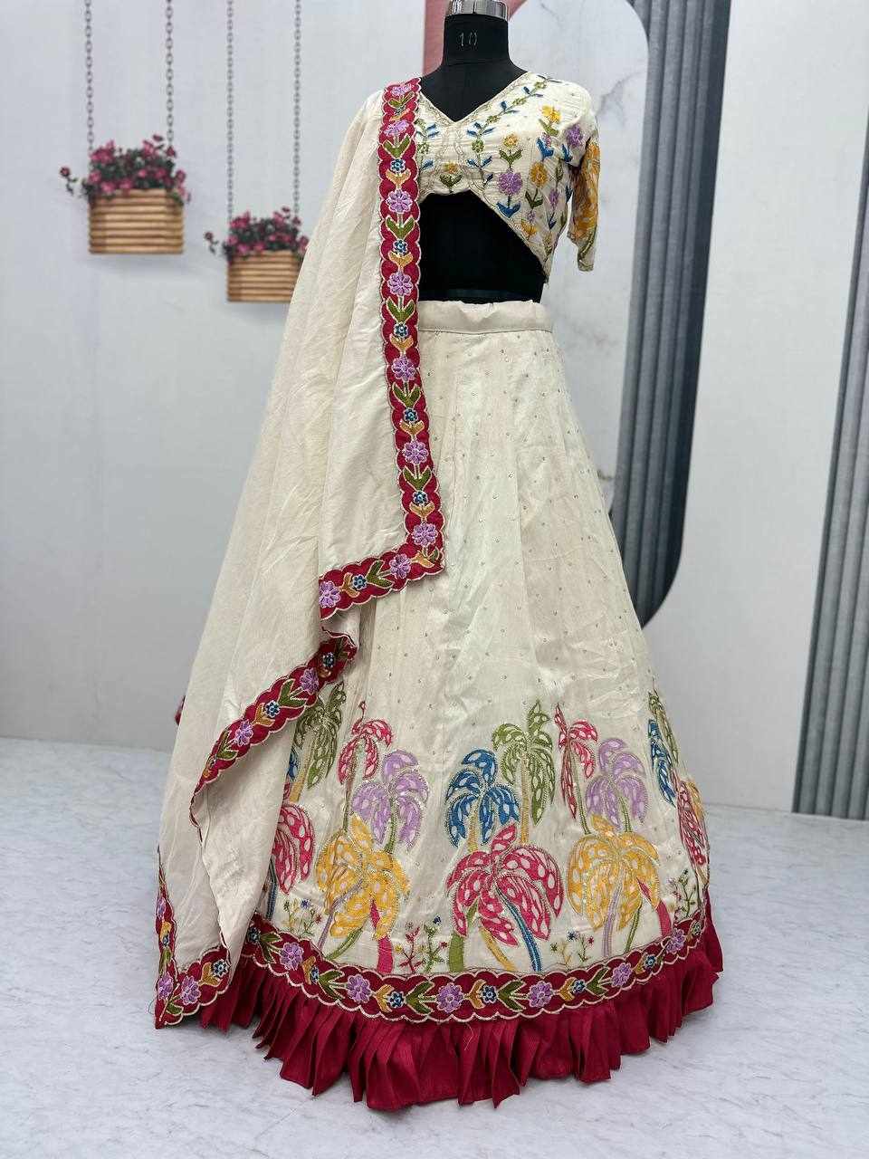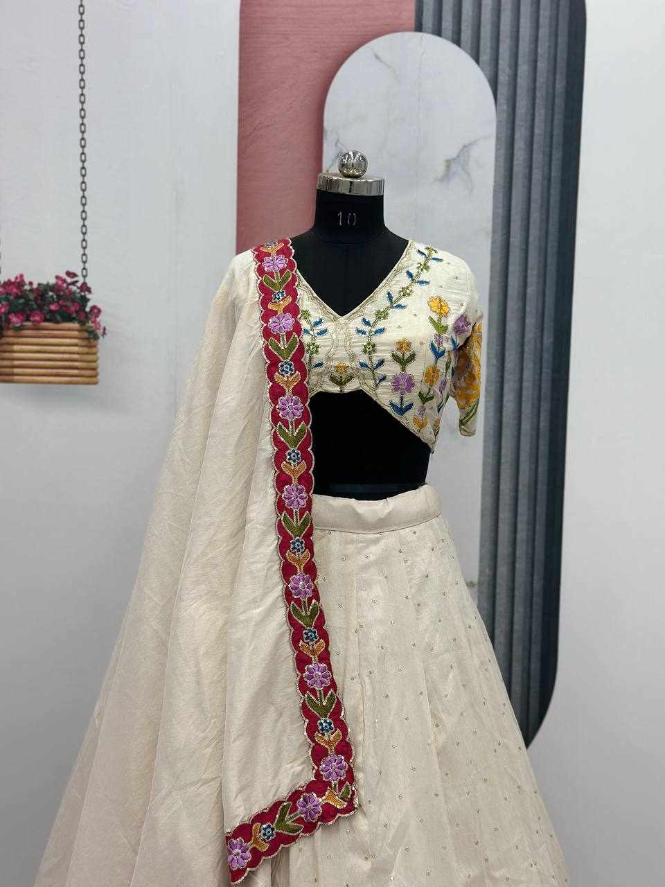 Name : PC 518 Tissue Simmer Silk Heavy Embroidery Sequence Work Lehenga