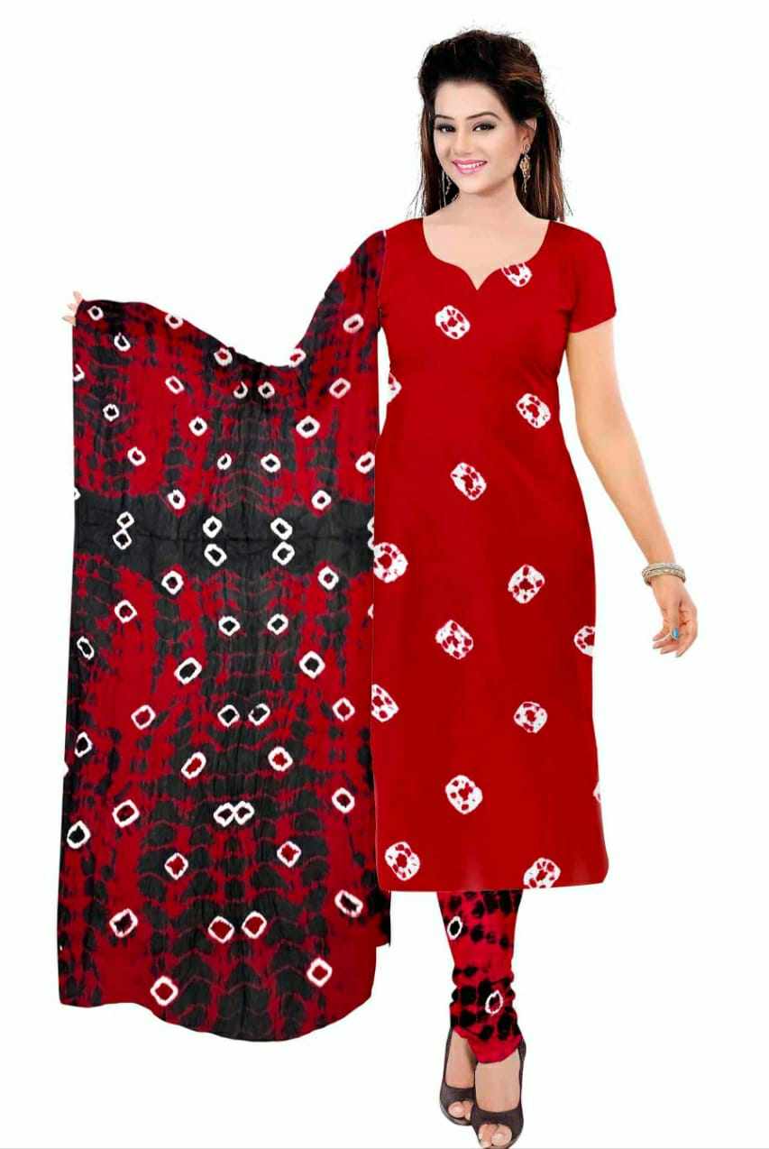 | Name : | HEER RED Pure Rayon Bandhni Dress Materail |