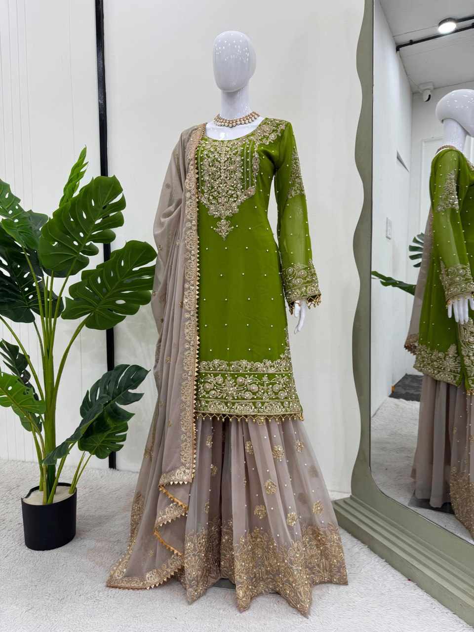 KD 1486 Green Faux Georgette with inner Beautiful Designer Suit