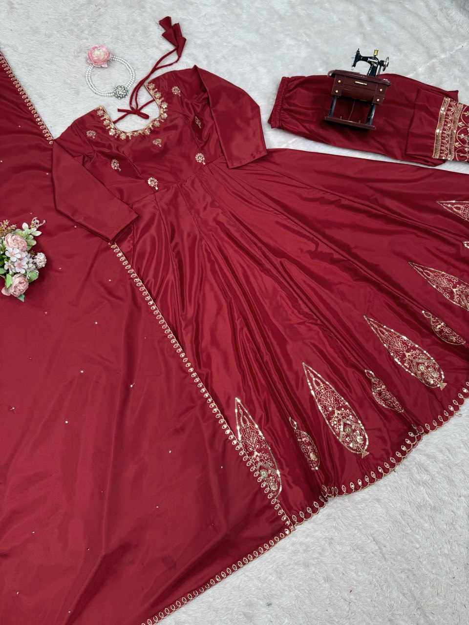KD 1505 Red Anarkali Natural Crep With Thred & Sequnce work Dress