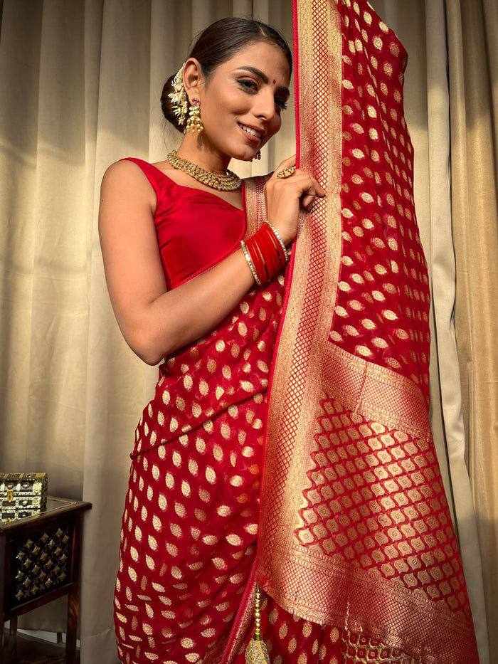 | Name : | KP 5083 RED SOFT LICHI SILK SAREE |