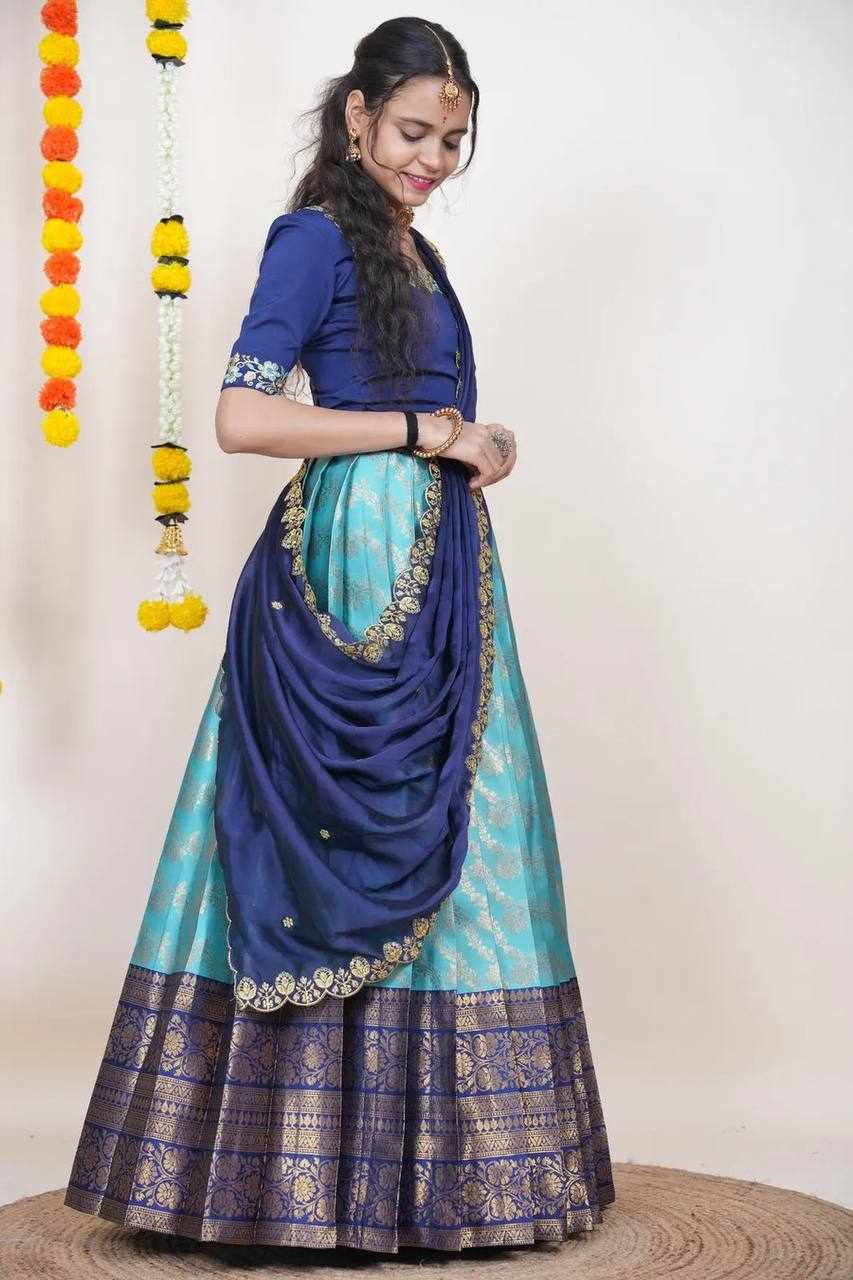| Name : | KPW 332 Kanjiveram Silk Zari Lehanga Banarashi Silk Duppta |