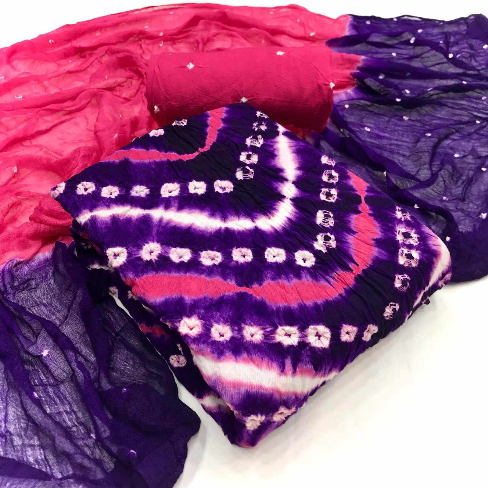 KT GULZAR Pure Rayon Leriya Bandhni Dress Materail