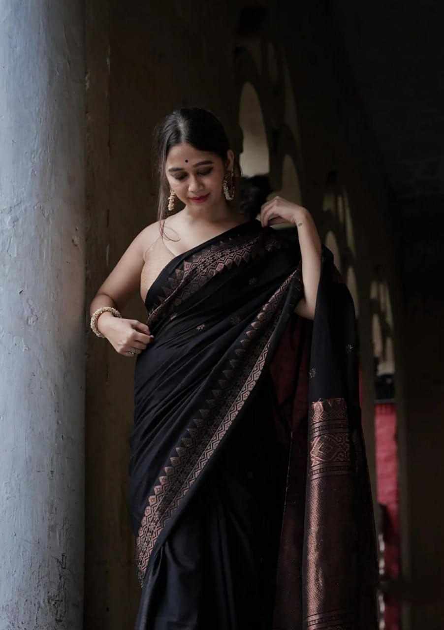 | Name : | MF 1950 BLACK BANARASI SOFT LICHI SILK SAREE |