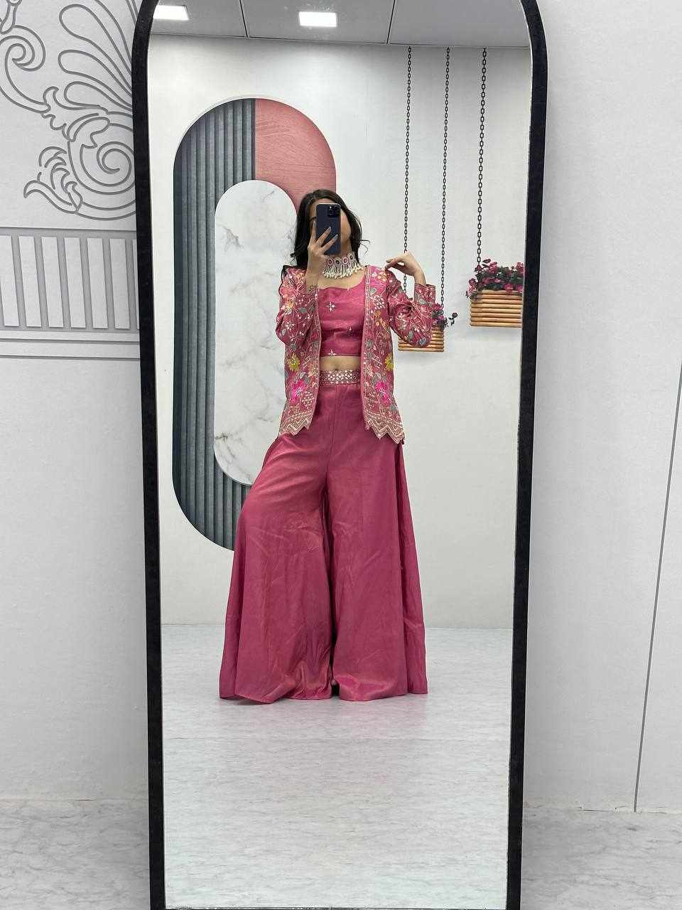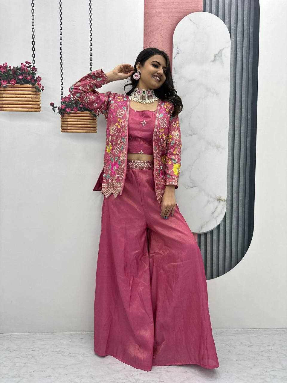 Pc 484 Pink Pure Tissue Simmer Party Wear Dress