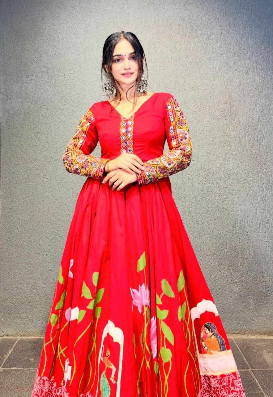 Work: Heavy Gamathi Work with Real Mirror Work and Kalamkari Print