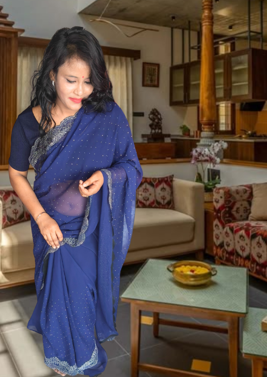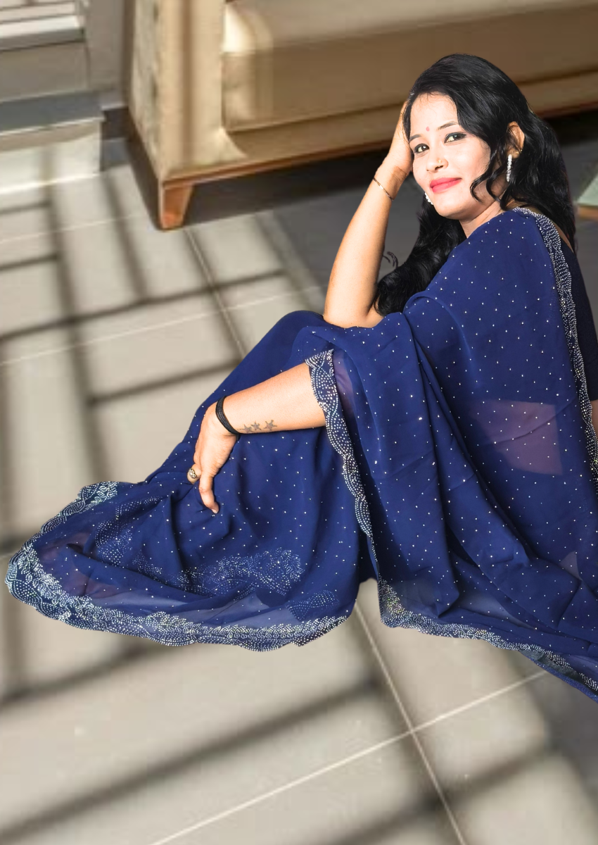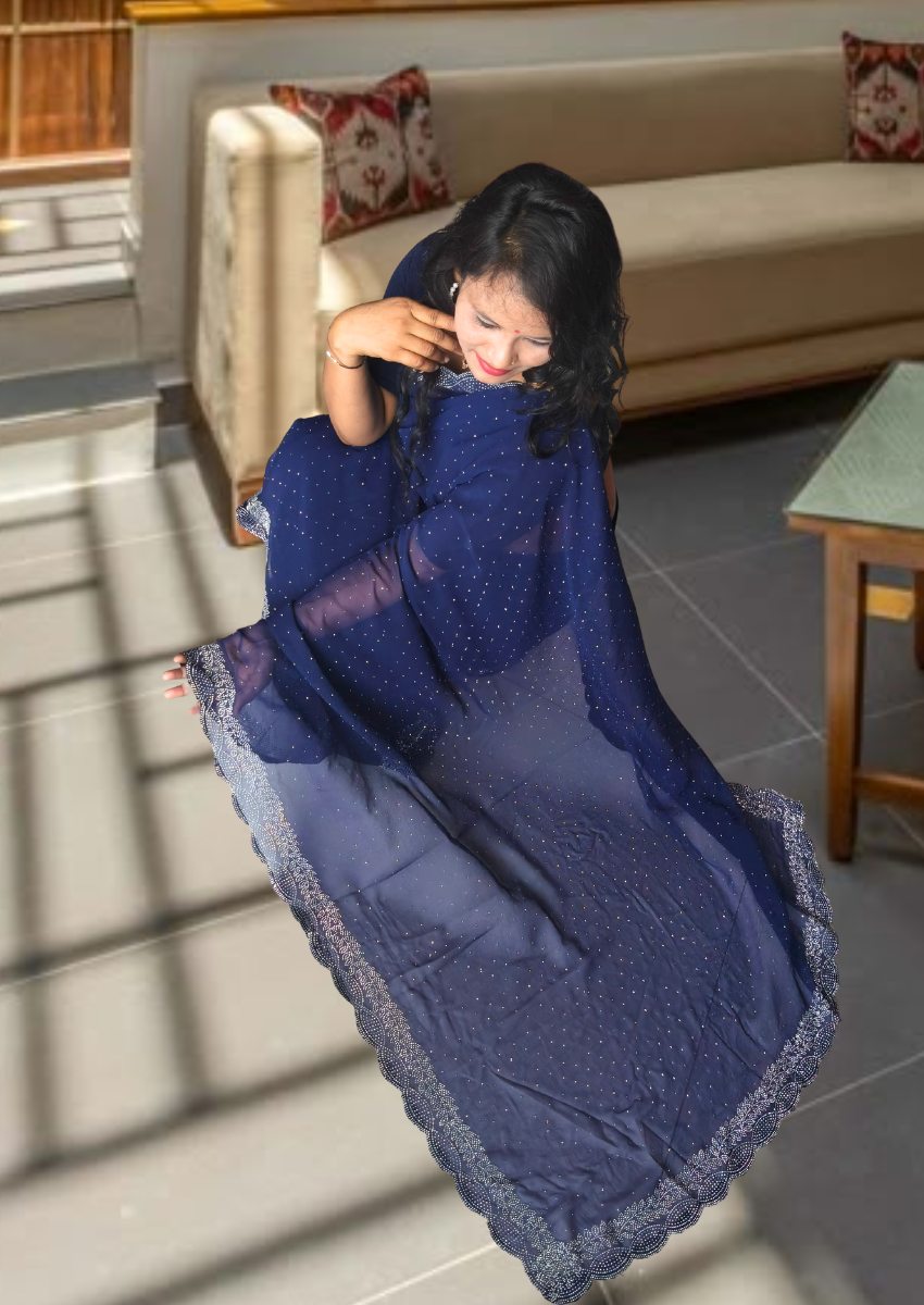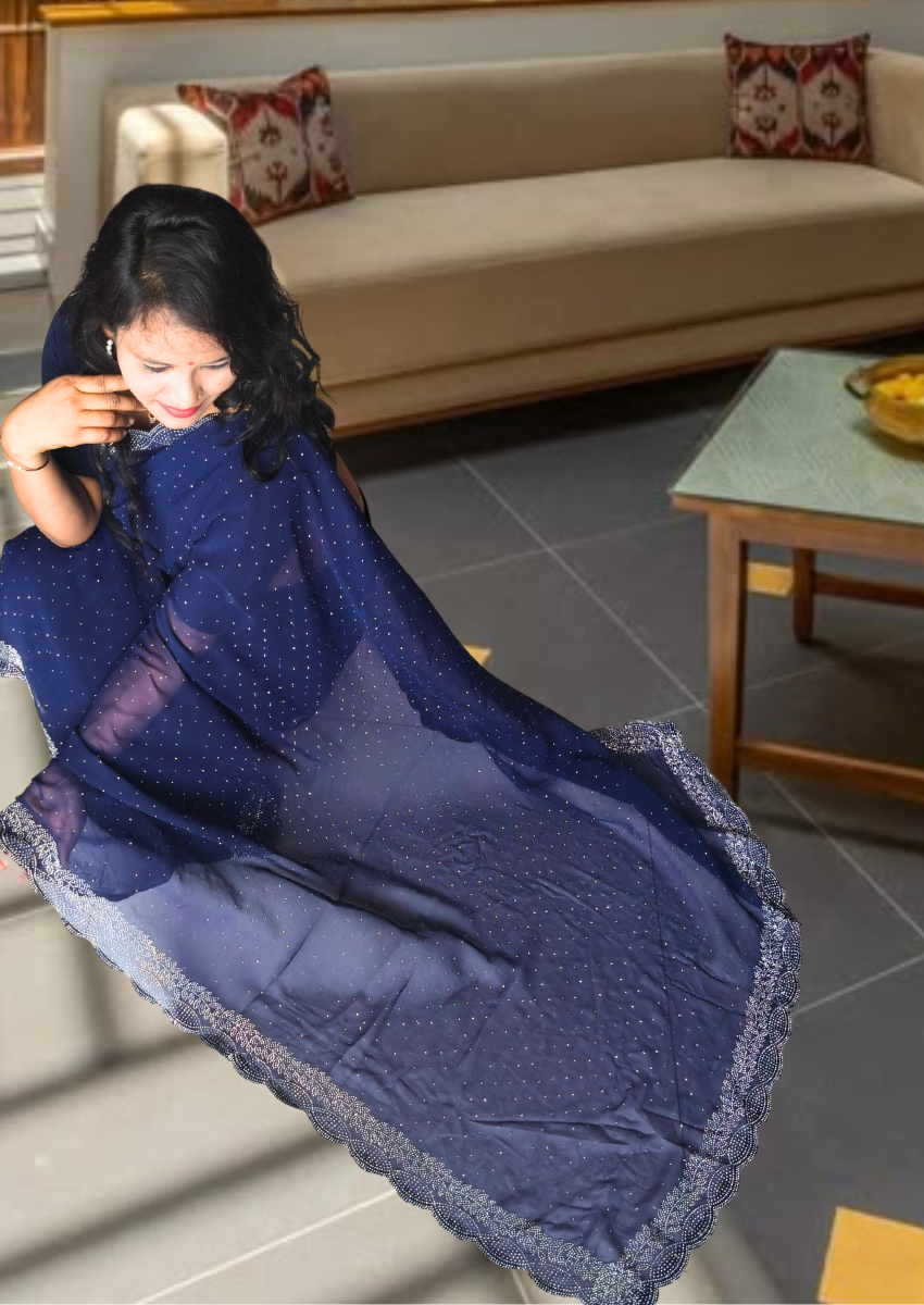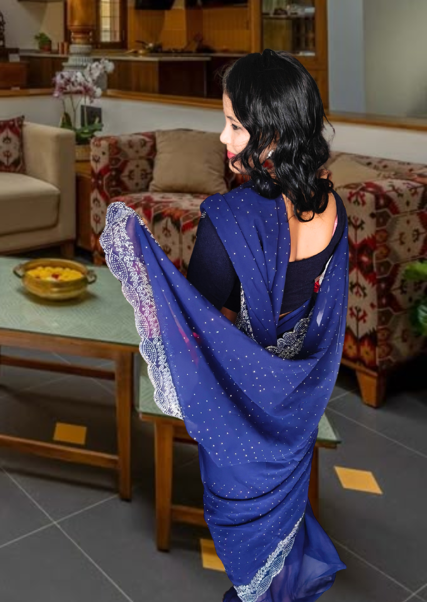 | Name : | S4s Blue Karishma Siroski Stones Lace Georgette Party Wear Saree |