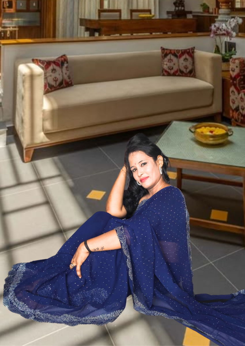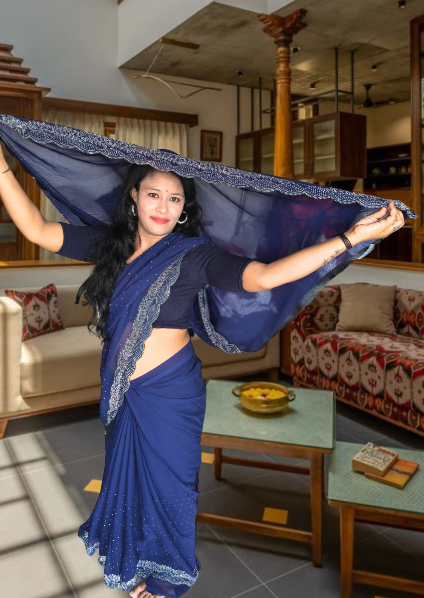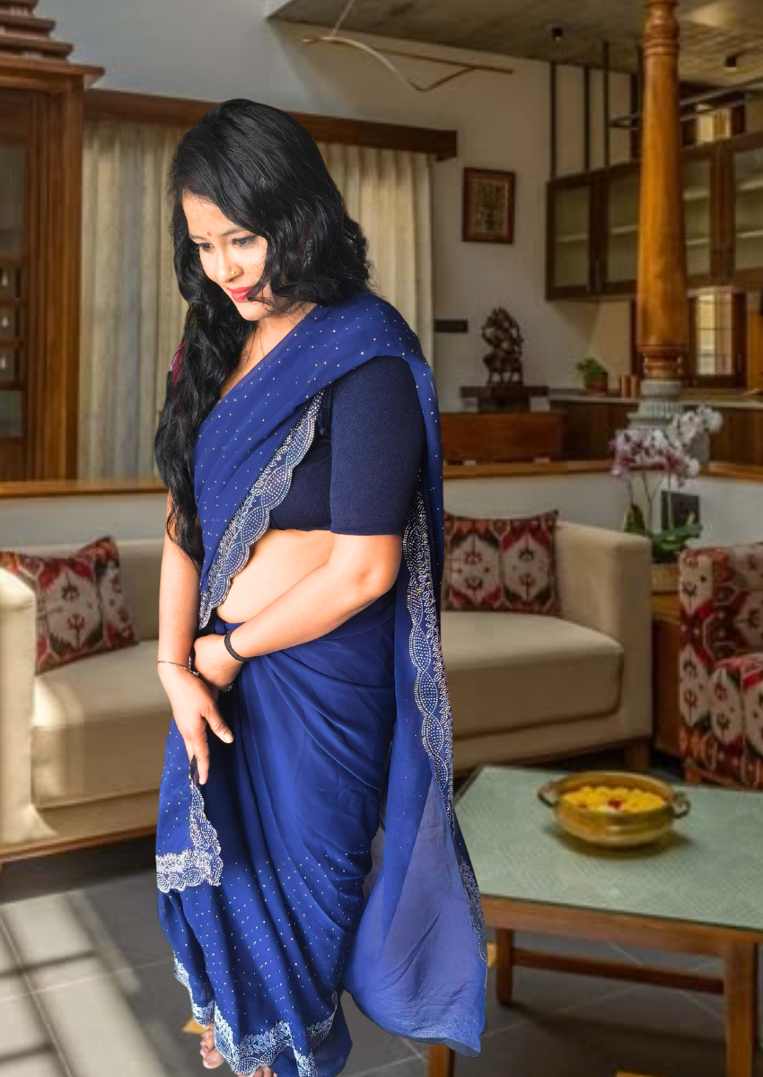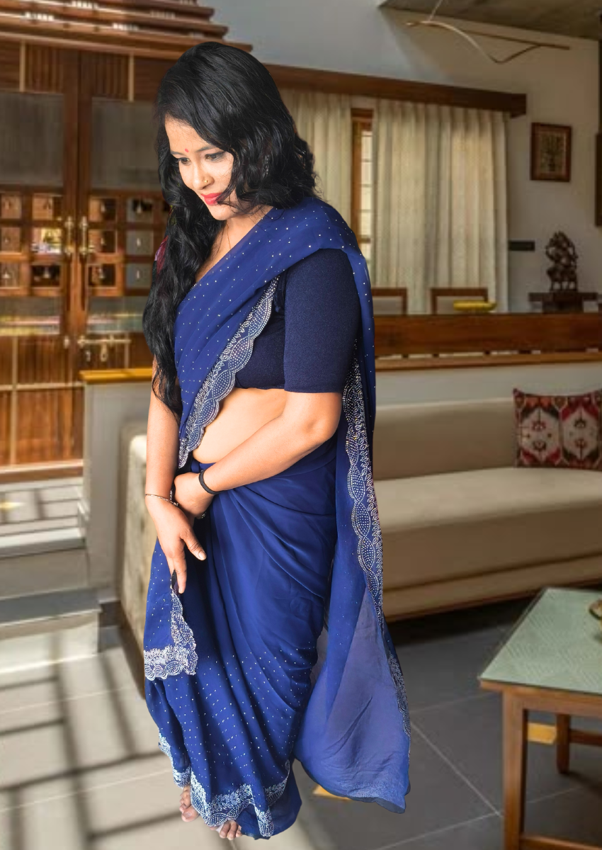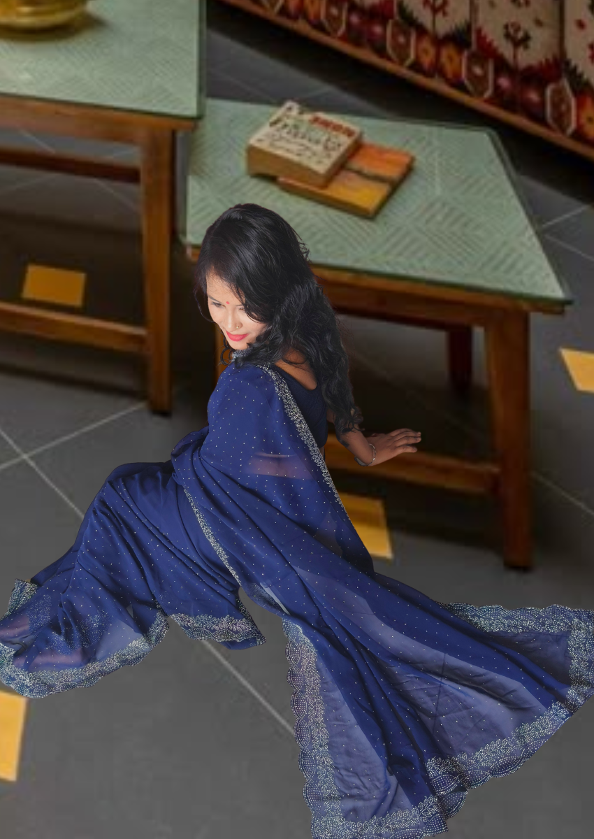 | Name : | S4s Blue Karishma Siroski Stones Lace Georgette Party Wear Saree |