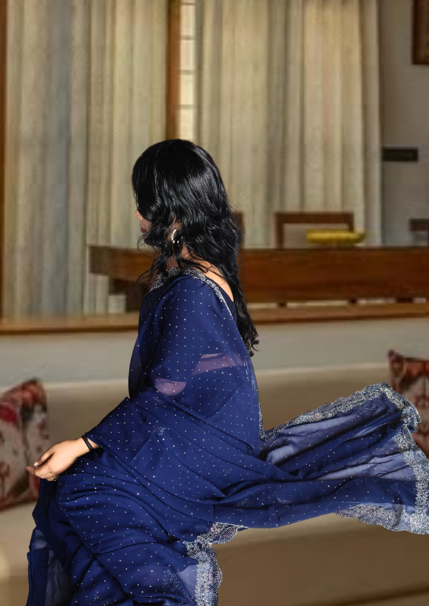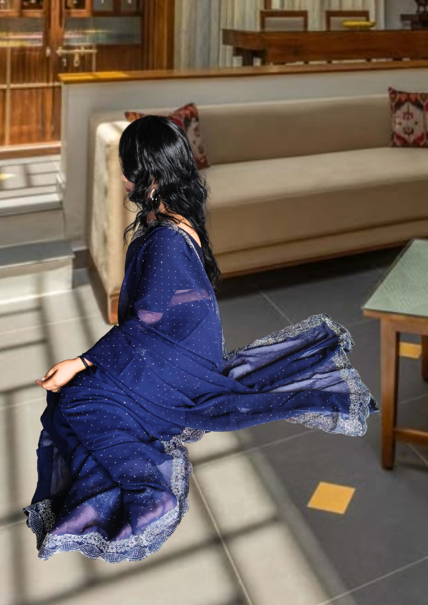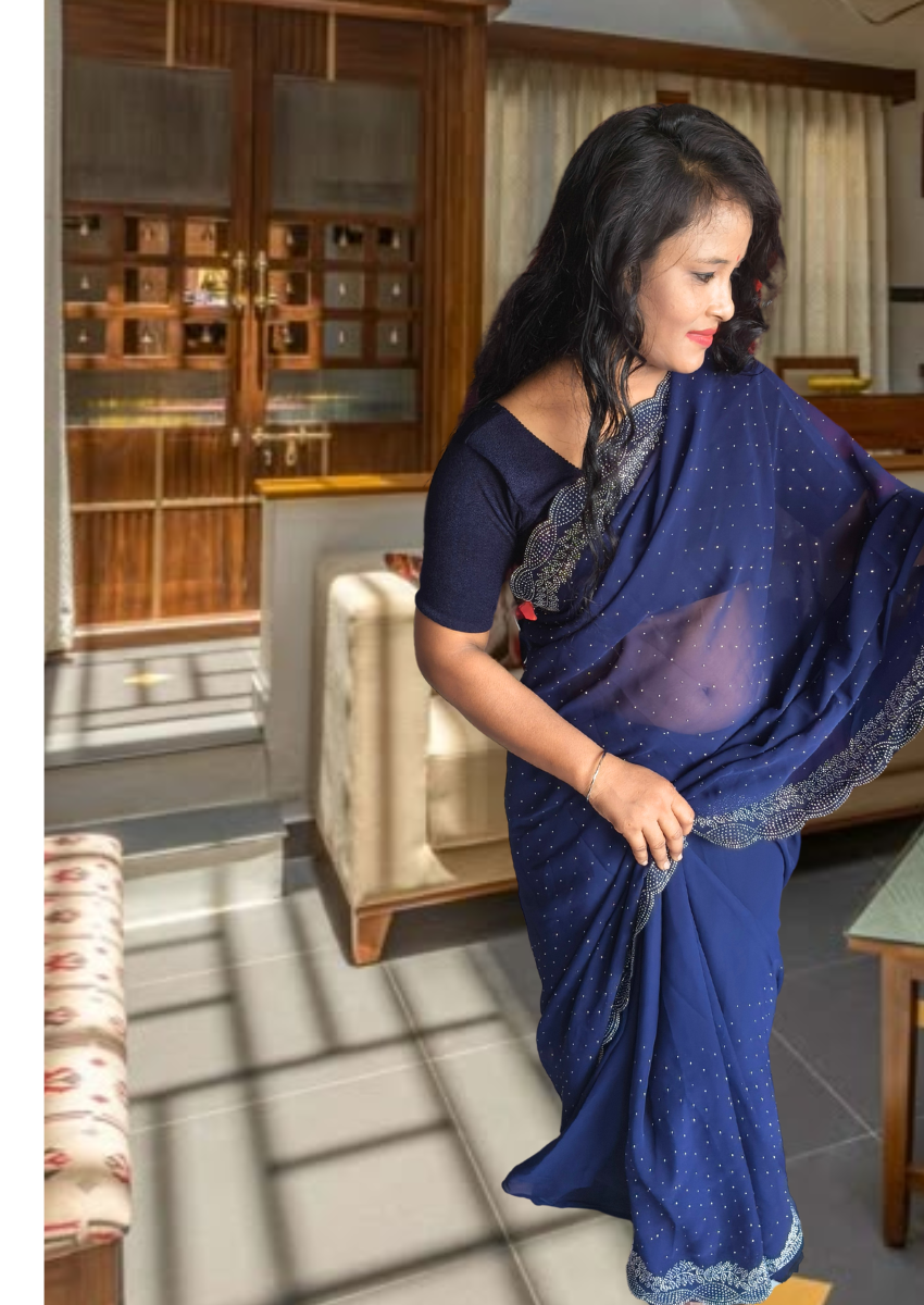 S4s Blue Karishma Siroski Stones Lace Georgette Party Wear Saree