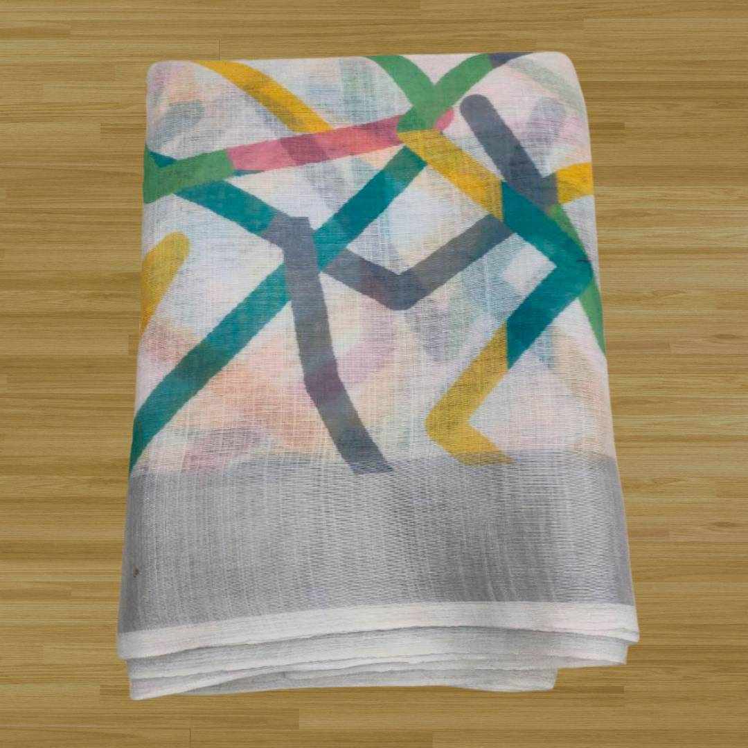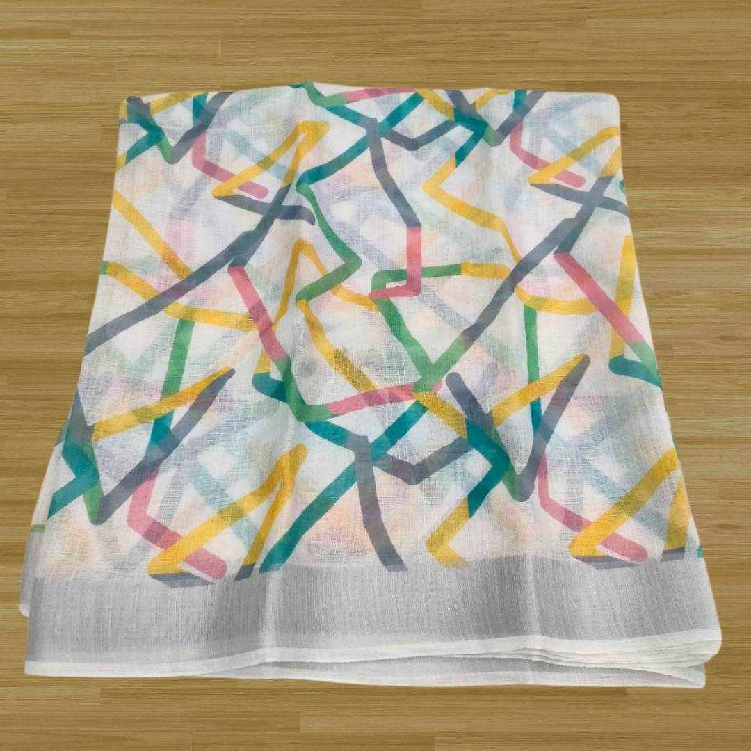 | Name : | S4S Linen White ZigZag Cotton Saree |