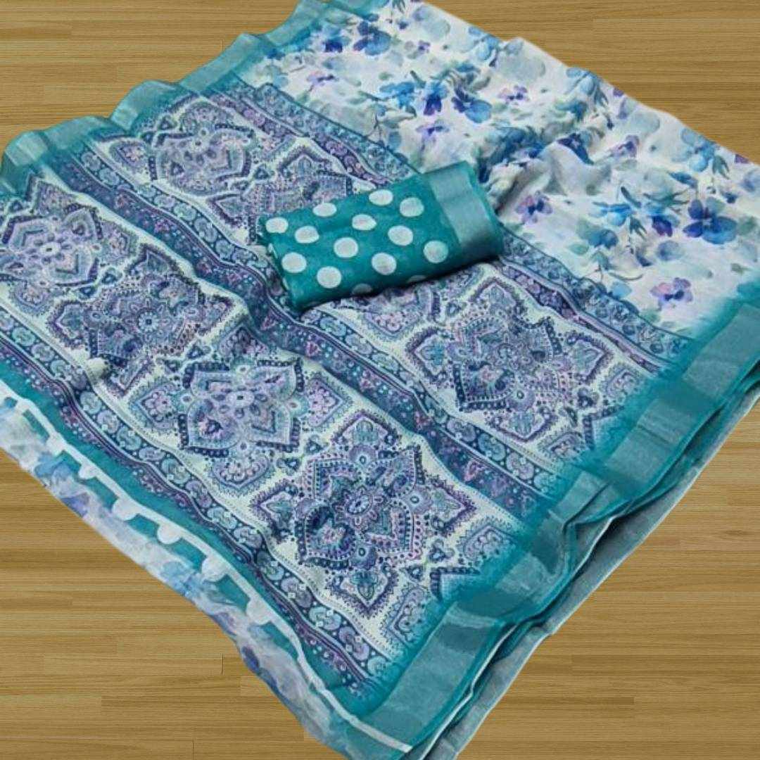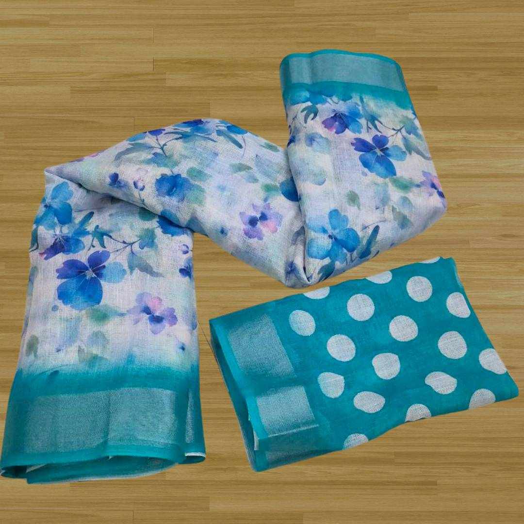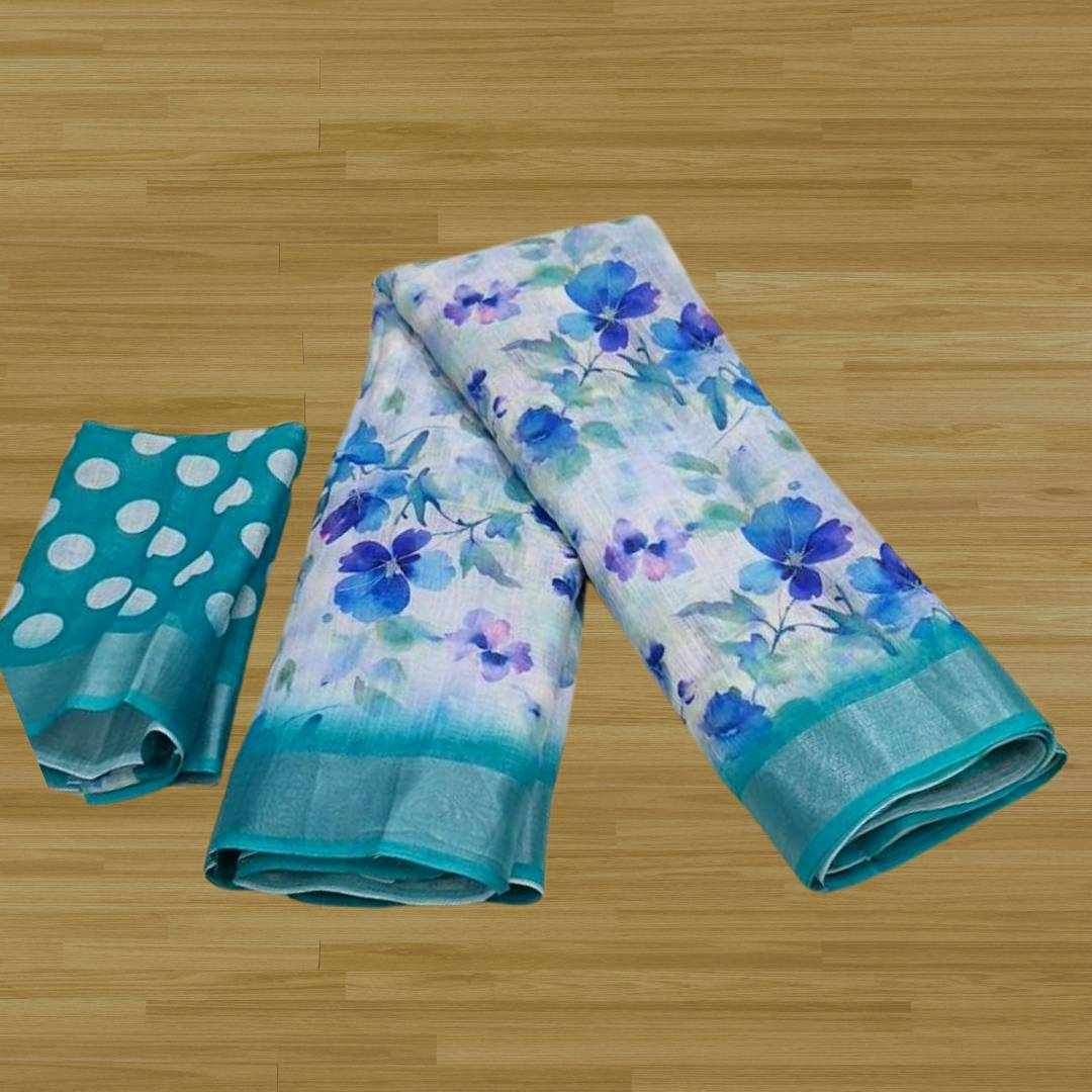 | Name : | S4S Linen White Blue Flower Digital Print Cotton Saree |