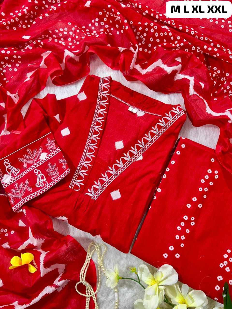 SF 31 Cotton Red Beautiful embroidery with suqes Heavy Suit 238