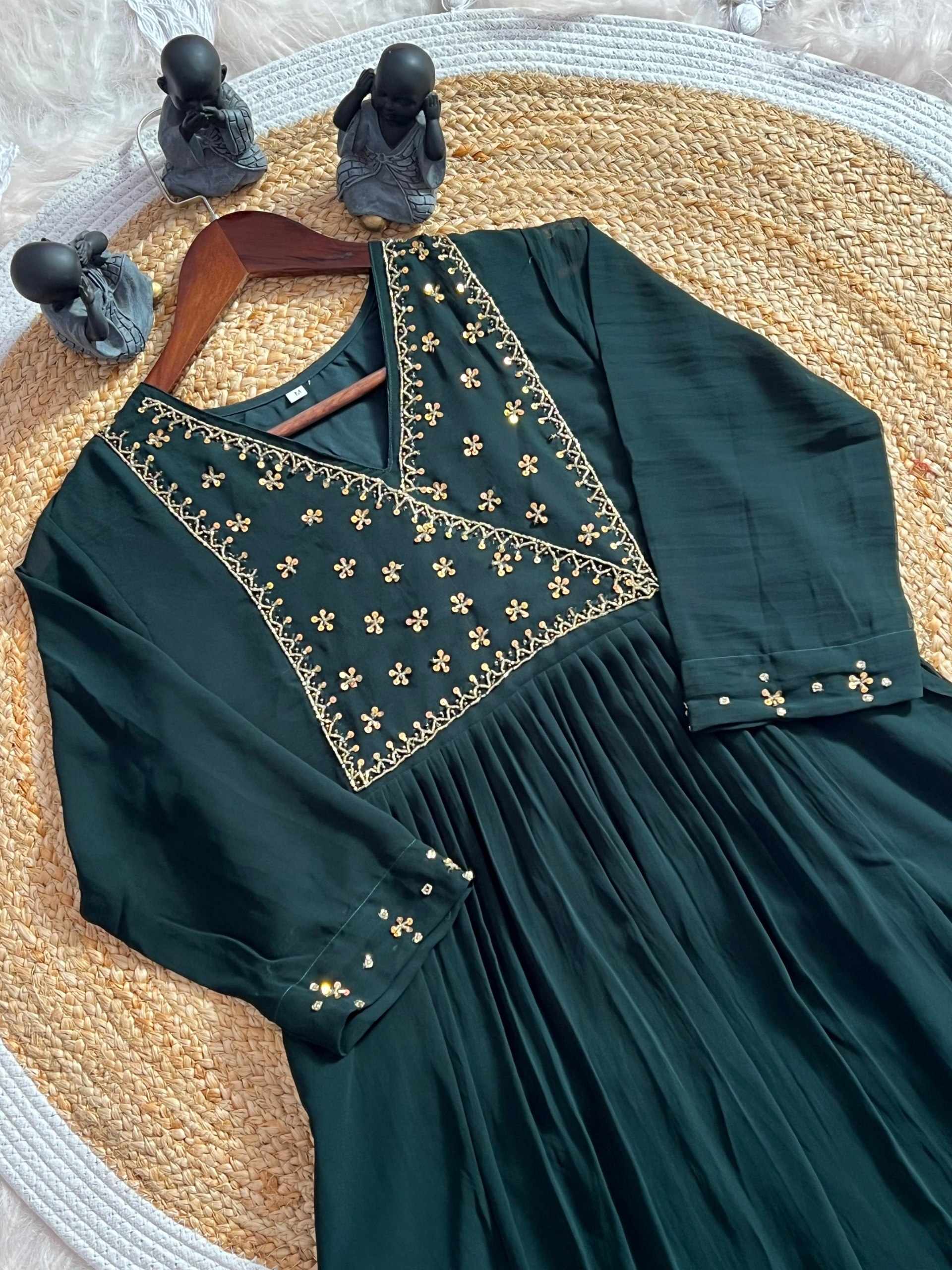 WM12 GREEN BLOOMING GEORGETTE BEAUTIFUL HANDWORK KURTI