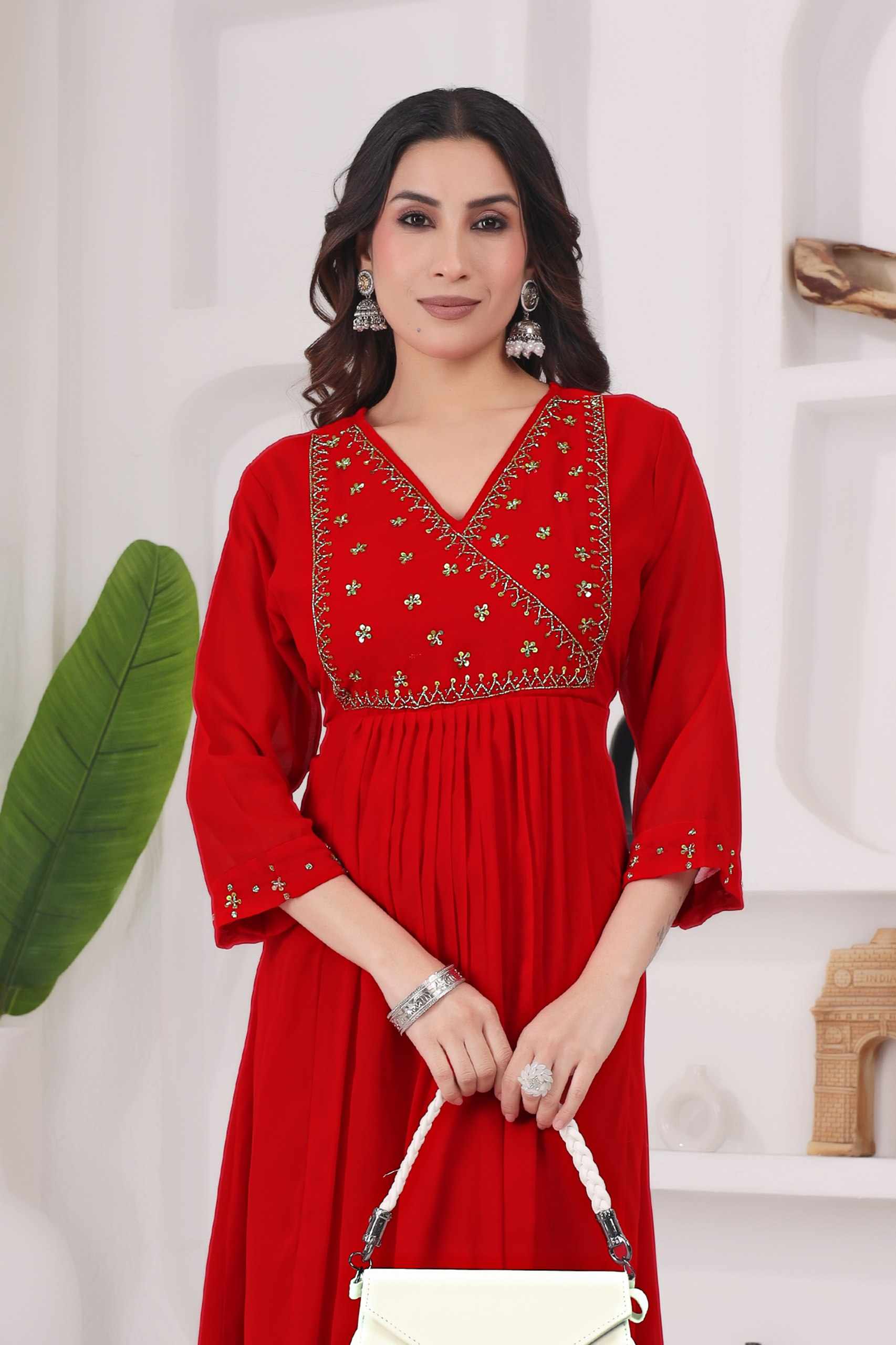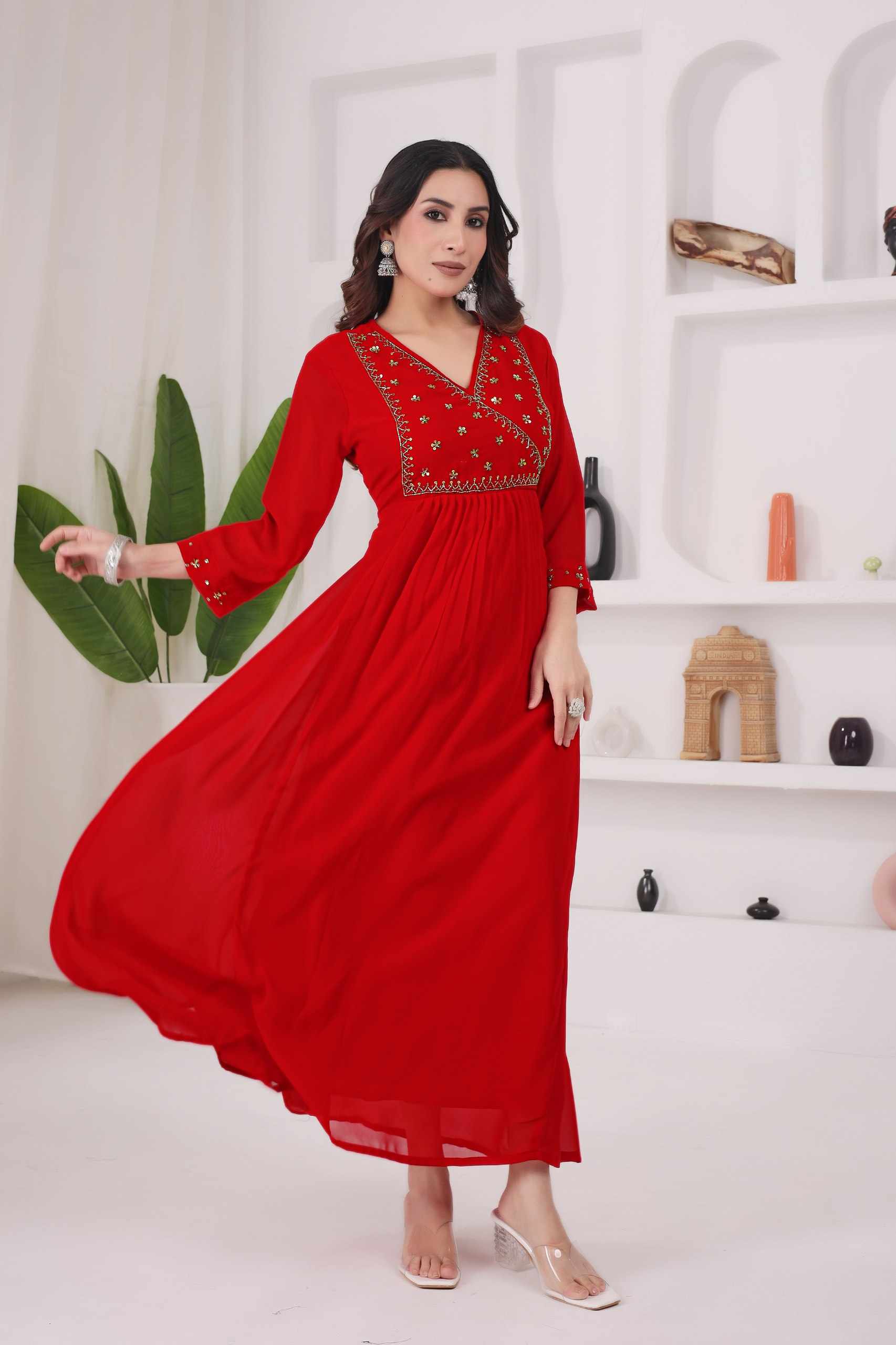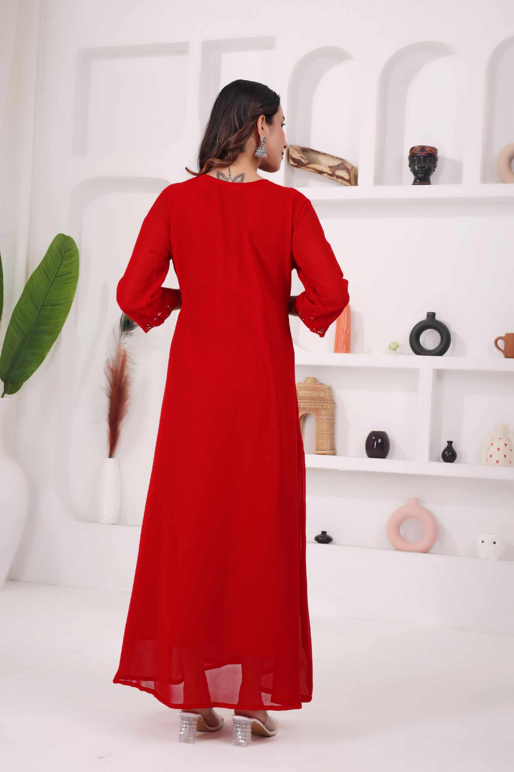 WM12 RED BLOOMING GEORGETTE BEAUTIFUL HANDWORK KURTI